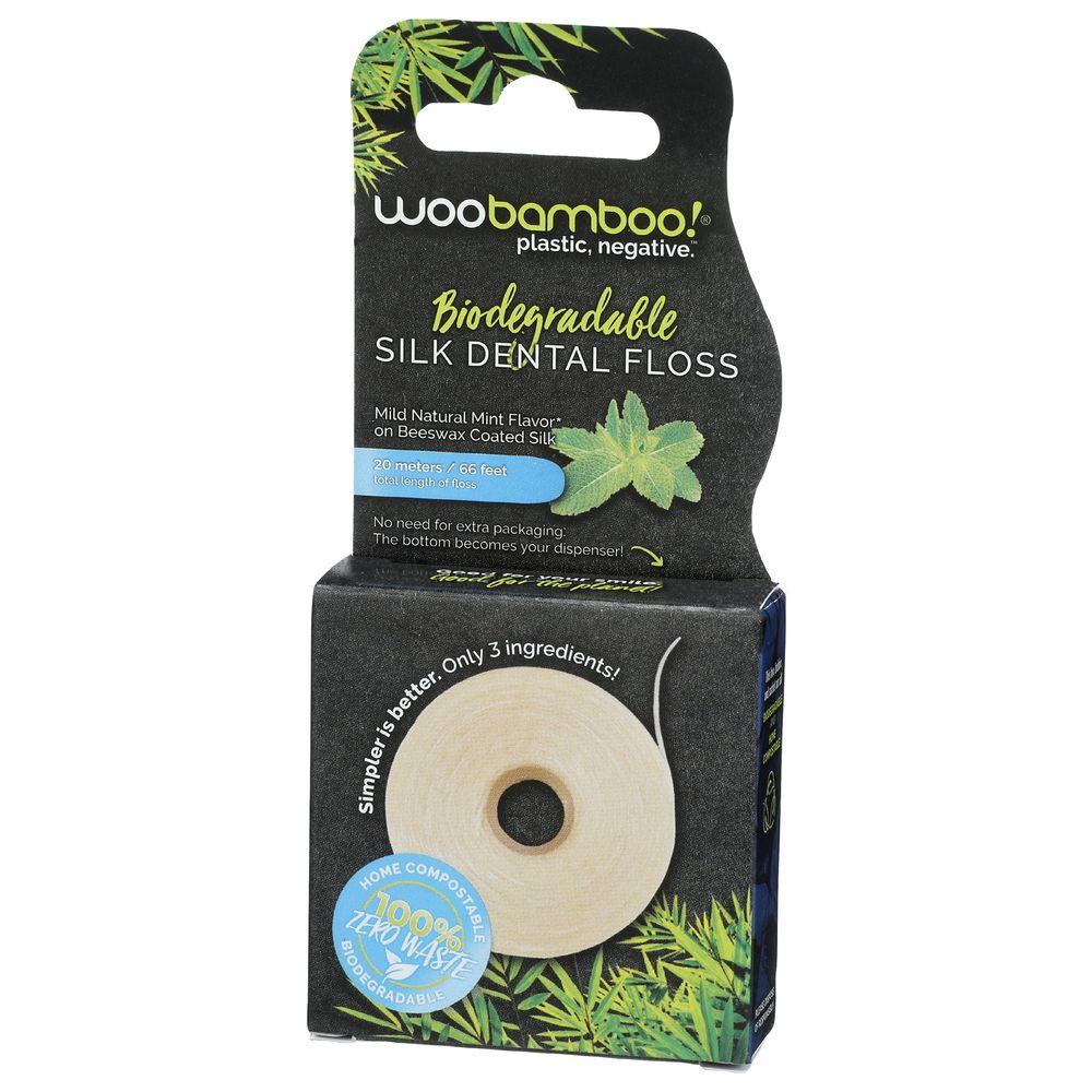 Woo Bamboo Biodegradable Silk Dental Floss offers an eco-friendly, effective oral care option for U.S. homeowners seeking a clean routine without plastic waste. Made from strong natural silk and coated with beeswax, this floss glides smoothly to help remove plaque and debris while offering a refreshing mint flavor from pure essential oils. Free from artificial ingredients, it provides a dependable, natural alternative for families who prioritize health-focused, environmentally conscious products.